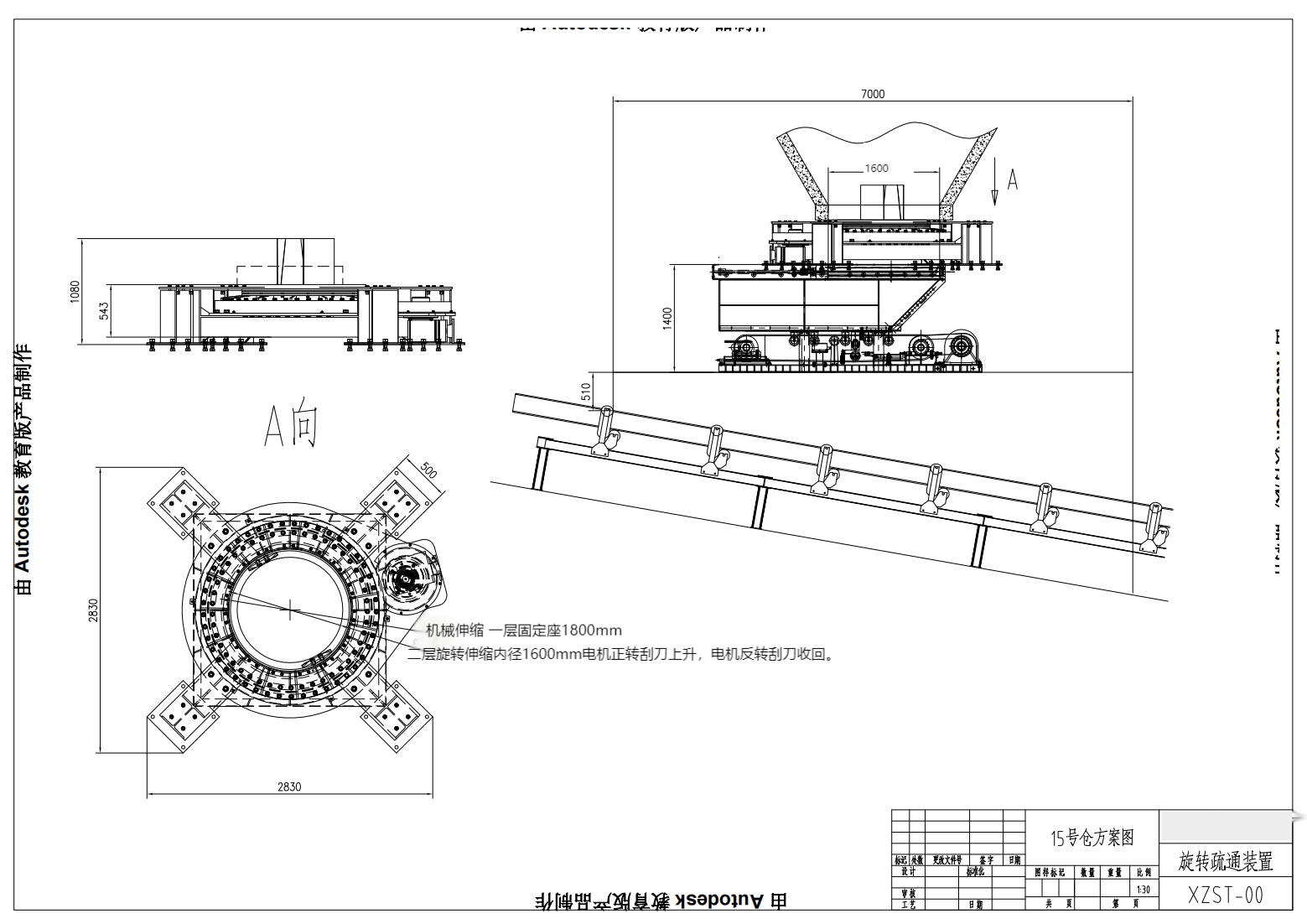 旋转装置尺寸为;长2830mm*宽2830m*高543mm 内径尺寸为1600mm 刀片间距1500mm